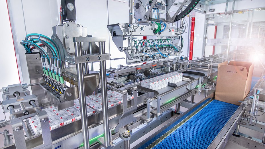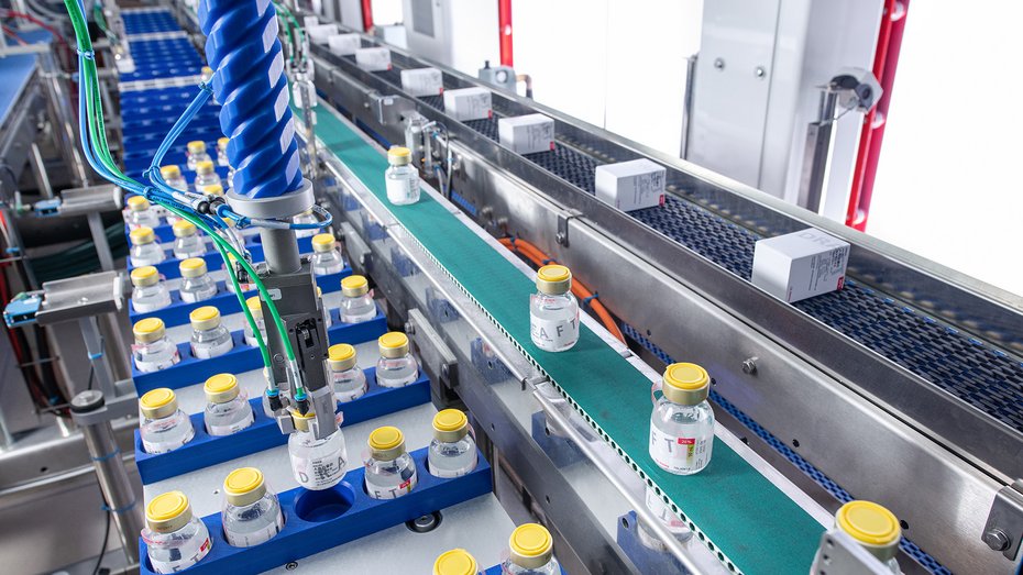 Die Hauptaufgabe bestand darin, die unterschiedlichen Verpackungsformate und Gebindegrößen der sensiblen Pharma-Produkte auf einer kompakten, einfach zu bedienenden Verpackungslinie zu integrieren, ohne die hohen pharmatypischen Sicherheitsanforderungen aus den Augen zu verlieren. Sowohl 50- als auch 100-Milliliter Vials (Fläschchen) sollten zunächst in Einzelkartons und dann auch in Versandkartons konfektioniert werden.