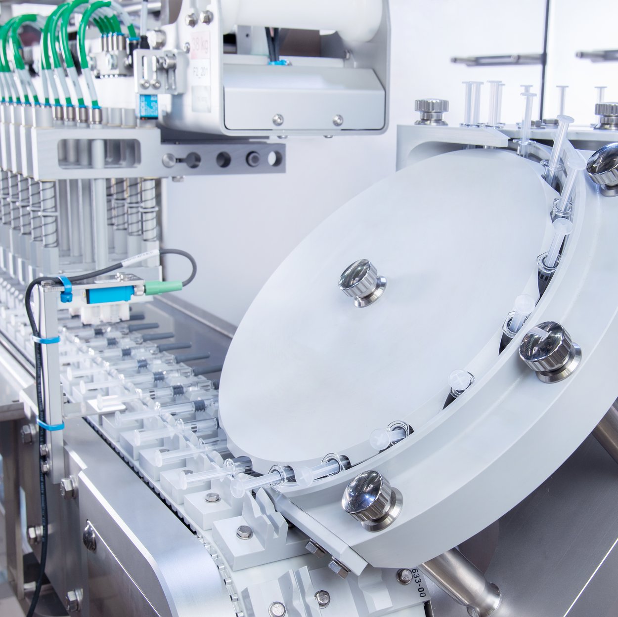 Die Sternräder lassen sich sehr produktschonend und exakt auf die hohen Anforderungen der Produktion abstimmen. Zusätzlich bieten sie eine größtmögliche Flexibilität, denn als austauschbare Formatteile können sie an beliebige Spritzenformate angepasst werden. Aktuell verpackt die Anlage allein fünf unterschiedliche Formate: 1-Milliliter-Langspritzen mit 16-Millimeter-Kanüle und Soft Cap, Tip Cap oder Hard Cap sowie 1-Milliliter-Standardspritzen mit Soft Cap oder Hard Cap. Ein entscheidender Vorteil, der dem Hersteller eine schnelle Reaktion auf künftige Marktanforderungen und die frühzeitige Vorbereitung auf bevorstehende Grippewellen erlaubt.d
