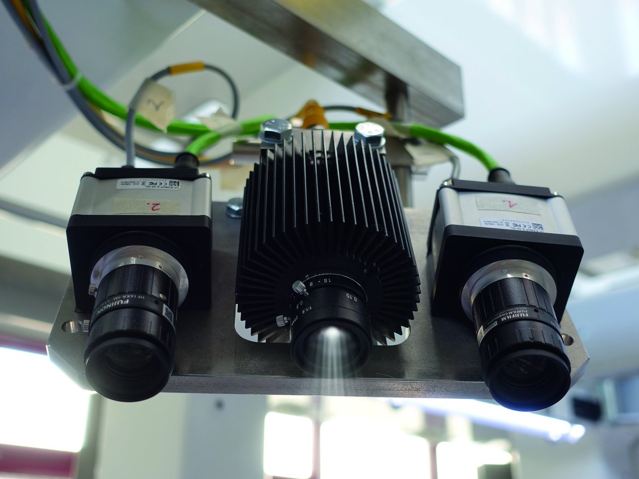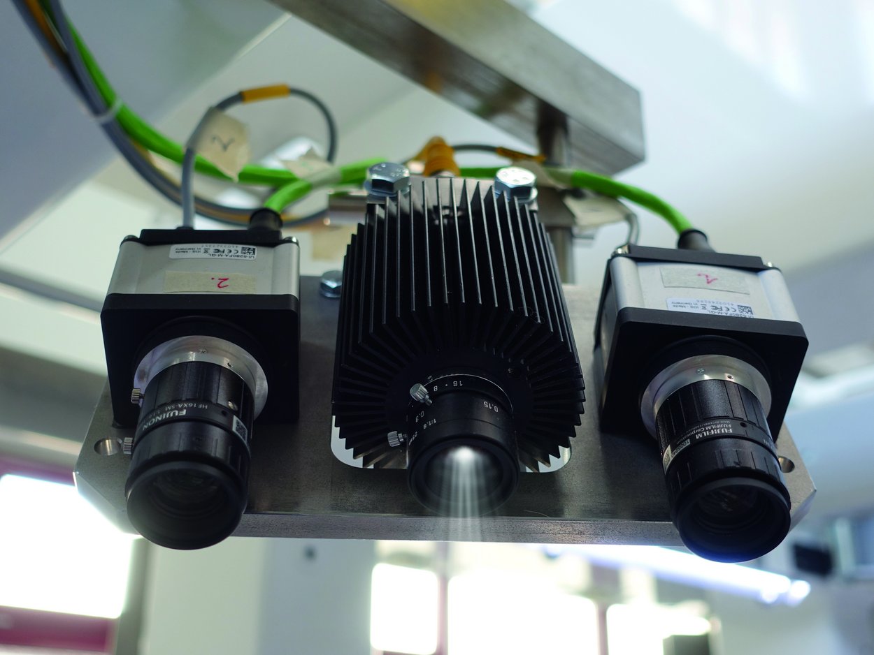 The new powerful camera system generates very high-resolution 3D images within fractions of a second. This makes it possible to quickly recognise the height and quality of an object in addition to its position and orientation, which ensures that the robots can pick up products in any position in three-dimensional space. The two camera pairs offer the best all-round view and fewer gaps in the image than conventional single-shot 3D camera systems. Additionally, there is a projector between each camera, which throws a random light pattern onto the products. Light pattern projection and stereo image processing are intelligently combined to create optimal point clouds. The height and surface control is a central function in the recognition of products in 3D space and in their qualitative evaluation.