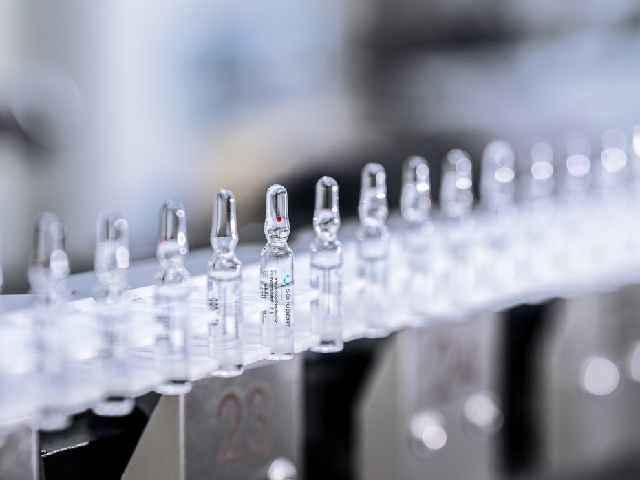Ampoules require special care during packaging. Schubert machines ensure break-proof handling through precise robotic technology and sensor-assisted singulation. This technology is ideal for small batches and varying formats.