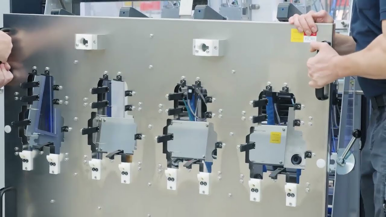 Quick format changes are crucial for efficient production processes, especially with frequently changing packaging formats. In Schubert pharmaceutical packaging machines, format changes take approximately 30 minutes – entirely tool-free and supported by our plug-and-play philosophy. Coded format parts and RFID detection ensure error-free format changes.