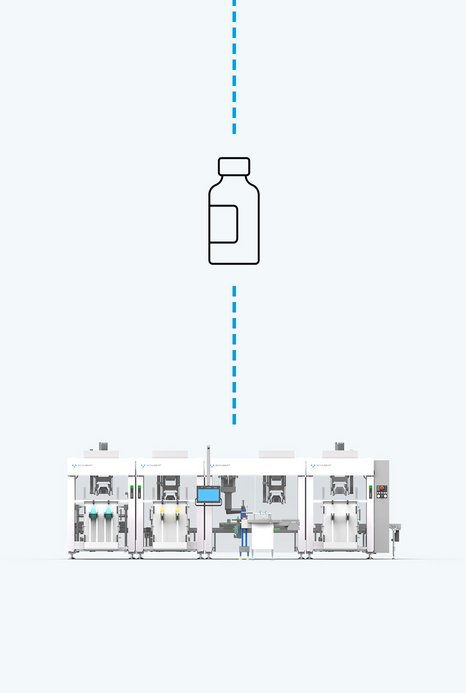 Pharmaceutical bottles need to be grouped and often supplemented with dosing aids or package inserts. Our top-loading technology ensures precise placement—even with different bottle and closure types.